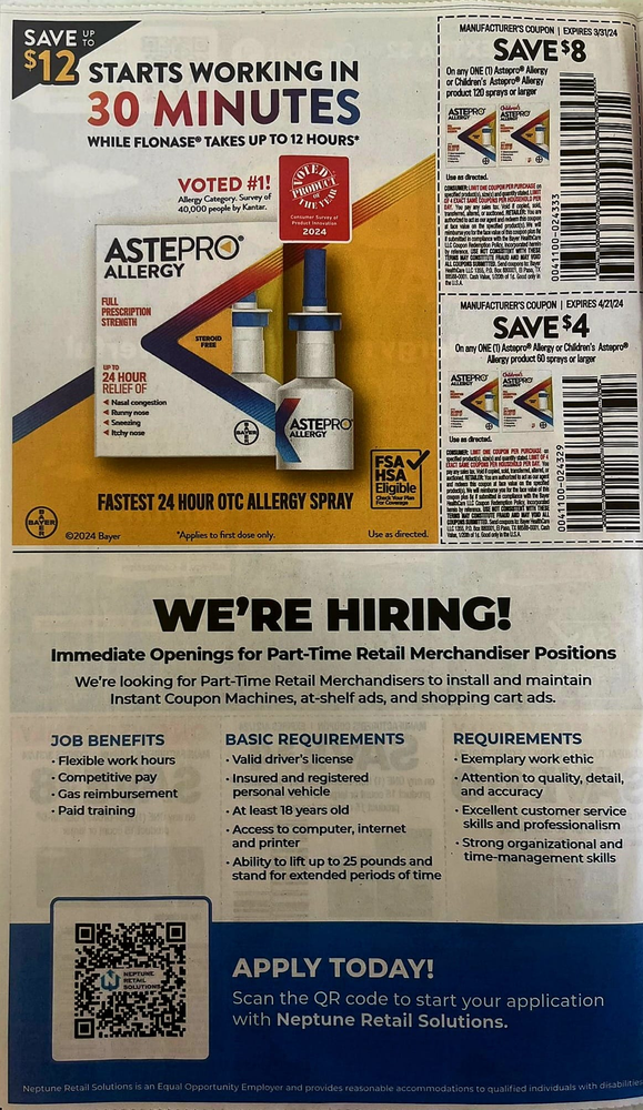 On Sunday 03/24 we can expect two inserts in select Sunday Papers.
