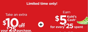 Take $10 off $25.00 PLUS Kohl’s Cash 8/31-9/4 Take $10 off $25 General Public Offer. 8/31-9/4 with code TAKE10. KOHL’S CASH Earn $10 for Every $50 Spent! Redeem Read More » August 31, 2023 No Comments