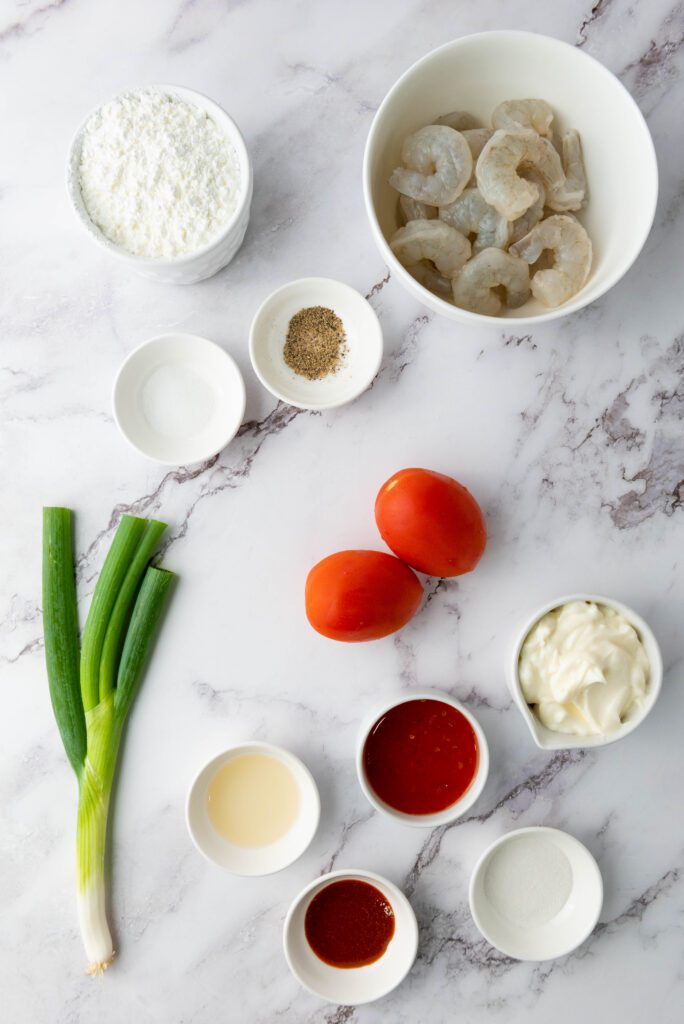 To make this mouthwatering dish, you’ll need fresh shrimp, cornstarch for a light and crispy coating, and vegetable oil for frying. The magic is in the Bang Bang Sauce, a mix of mayonnaise, sweet chili sauce, rice vinegar, sriracha, and sugar. For garnishing, freshly sliced green onions and diced tomatoes add a pop of color and freshness. Adjust the spice level with more or less sriracha, and feel free to use gluten-free cornstarch or mayo for dietary needs.