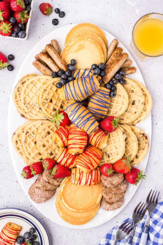 Can’t decide between pancakes or waffles? Why not offer them both with this charcuterie!