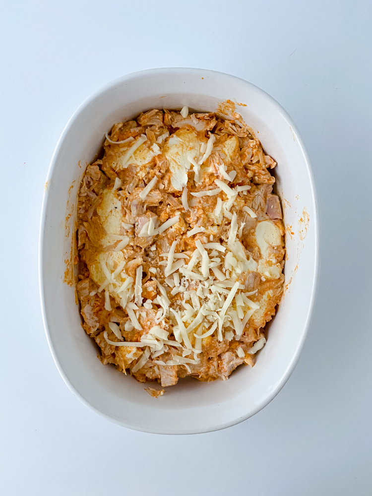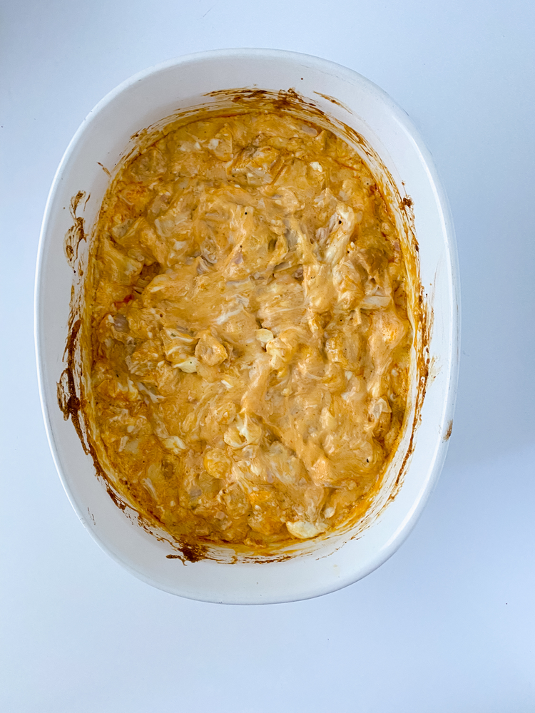 Overbaking your buffalo chicken dip can result in a dry and rubbery texture, which nobody wants! Keep an eye on it while it's in the oven and take it out as soon as it starts bubbling around the edges.