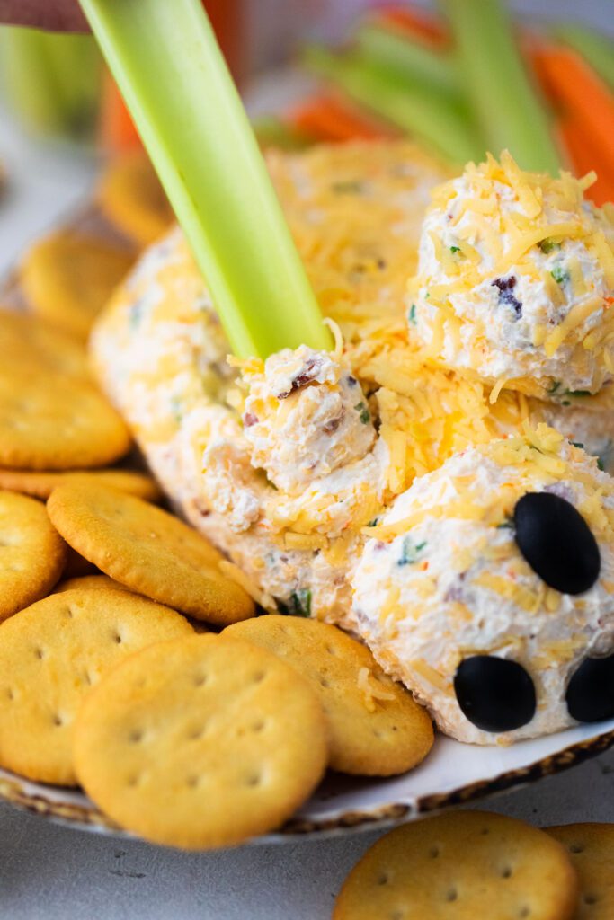 - · Garnish and serve: Last, top with parsley to make it look like grass, and serve with veggies, crackers, or pretzels.