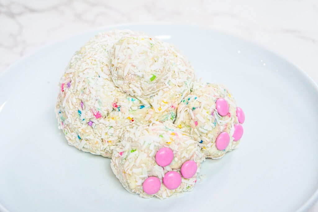 Now, assemble your bunny butt by placing the balls together in the desired shape. For a final touch, chill it again until you’re ready to serve.