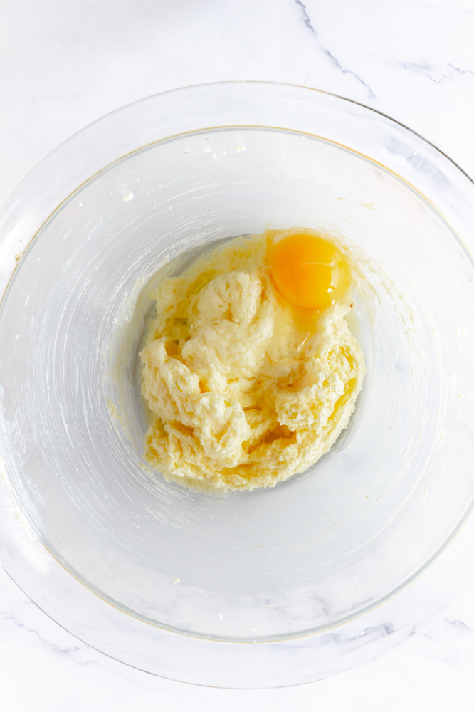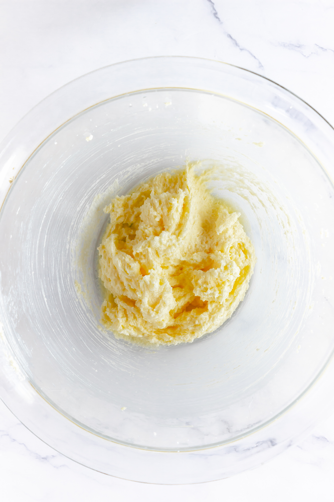 • In a medium bowl, beat butter, sugar until creamy. I use my stand mixer as it is my go to mixer for baking. I use the paddle attachment as it mixes these well.
