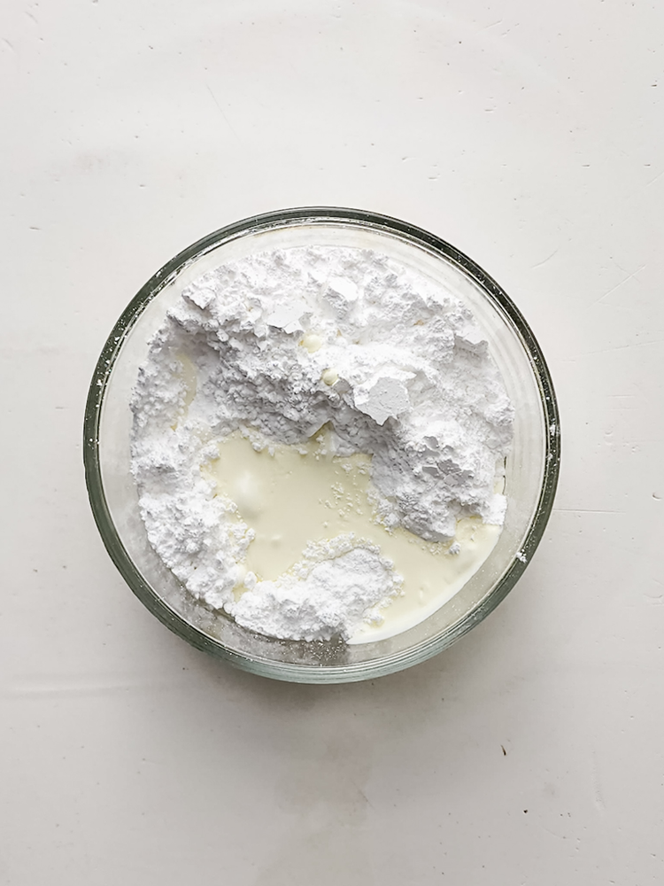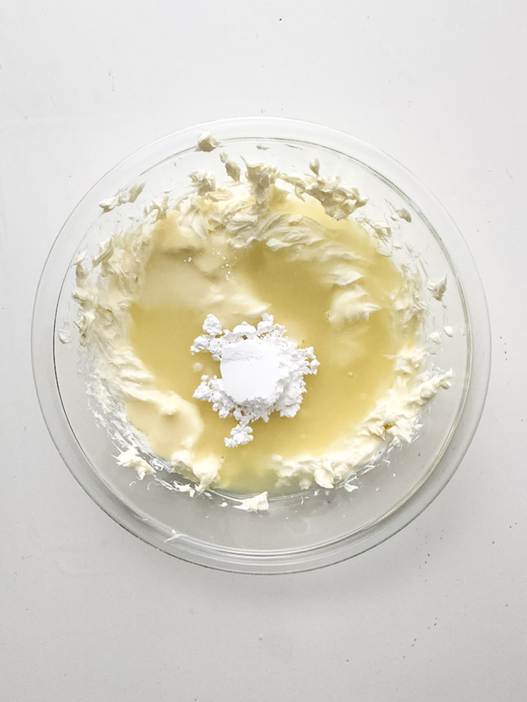 In a large bowl, add the cream cheese. Blend with a hand mixer until smooth. Then add the sweetened condensed milk along with the powdered sugar and salt.