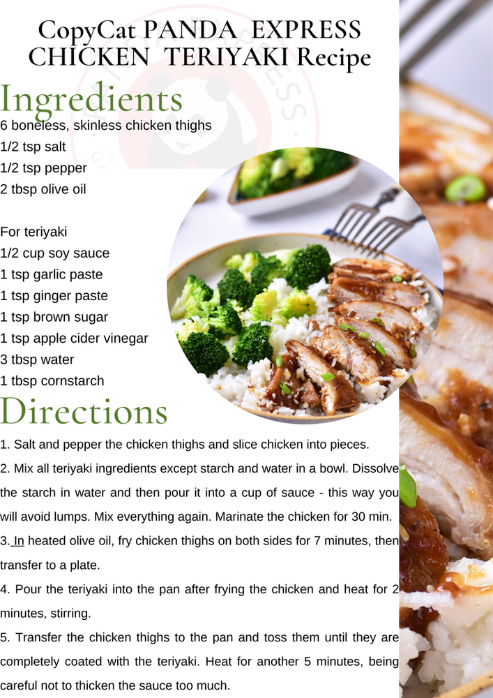 By following this Copycat Panda Express Chicken Teriyaki recipe, you can now enjoy the delicious flavors of your favorite takeout dish in the comfort of your own home. With simple , common household ingredients and easy instructions, anyone can recreate this popular dish without breaking the bank. So next time you're craving some sweet and savory chicken teriyaki, skip the long lines at Panda Express and whip up this homemade version that is sure to impress! You can store any leftover chicken in an airtight container. We are sure that once you try this copycat Panda Express Teriyaki Chicken you will realize you can get the great flavor of your favorite panda express recipes right in your own home. with some common household ingredients. The recipe card for this panda express teriyaki chicken recipe can be found at the bottom of this post. You can save the card for yourself to print out.
