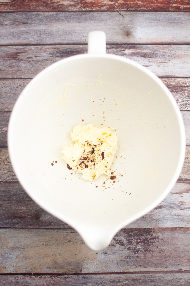 First we start by making the shortbread recipe. Using a stand mixer or a hand mixer, cream the butter and sugar together until smooth.