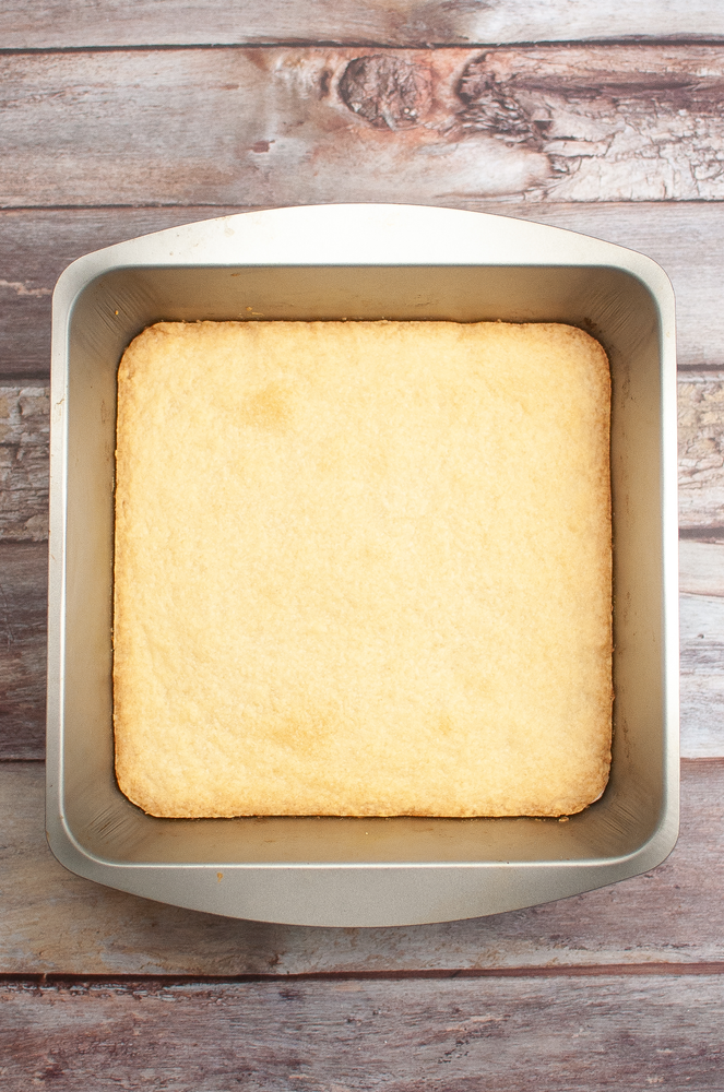 Spread the dough evenly into the bottom of the prepared baking pan.