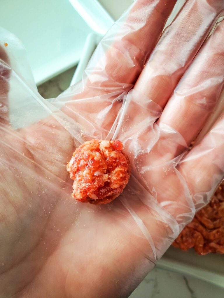 - Form sausage into small balls and cook over medium heat until browned. Remove and set aside.