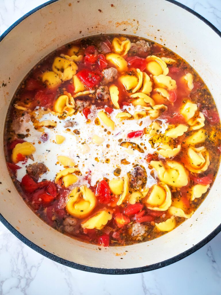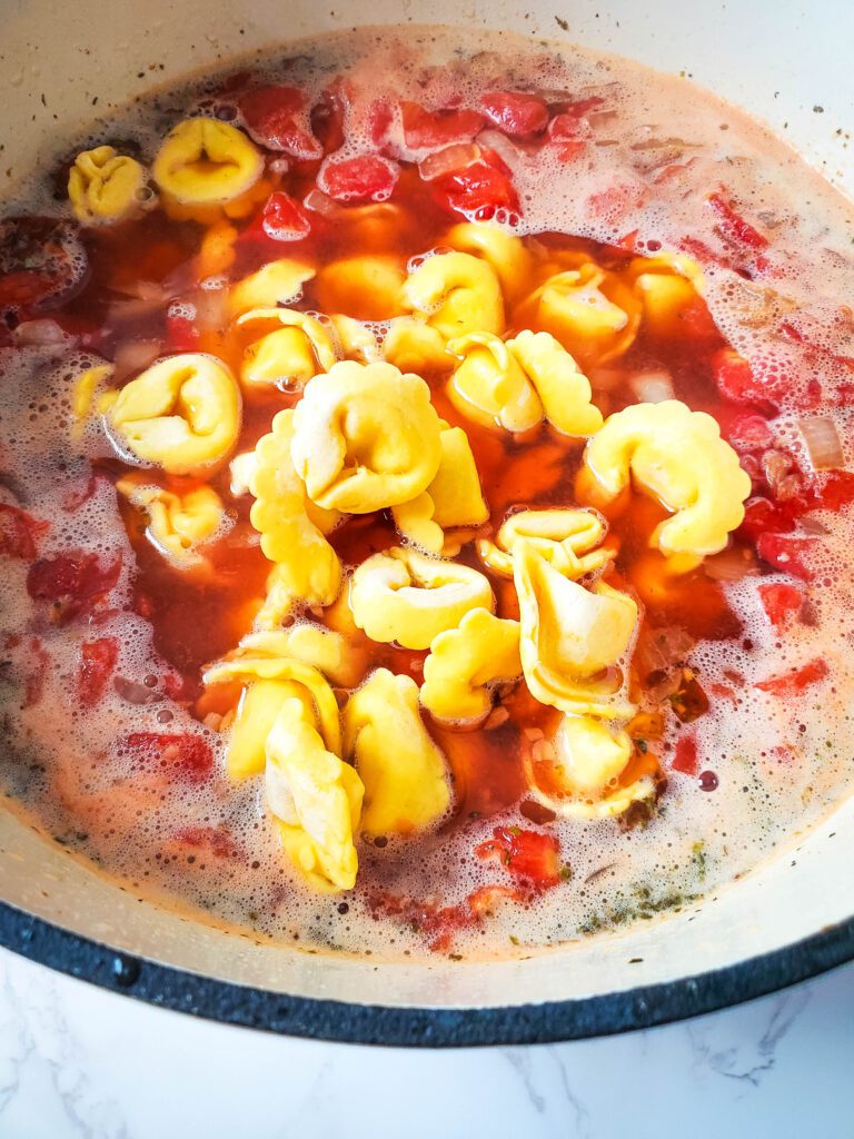 - Add tortellini, reduce heat, and simmer for 5 minutes.