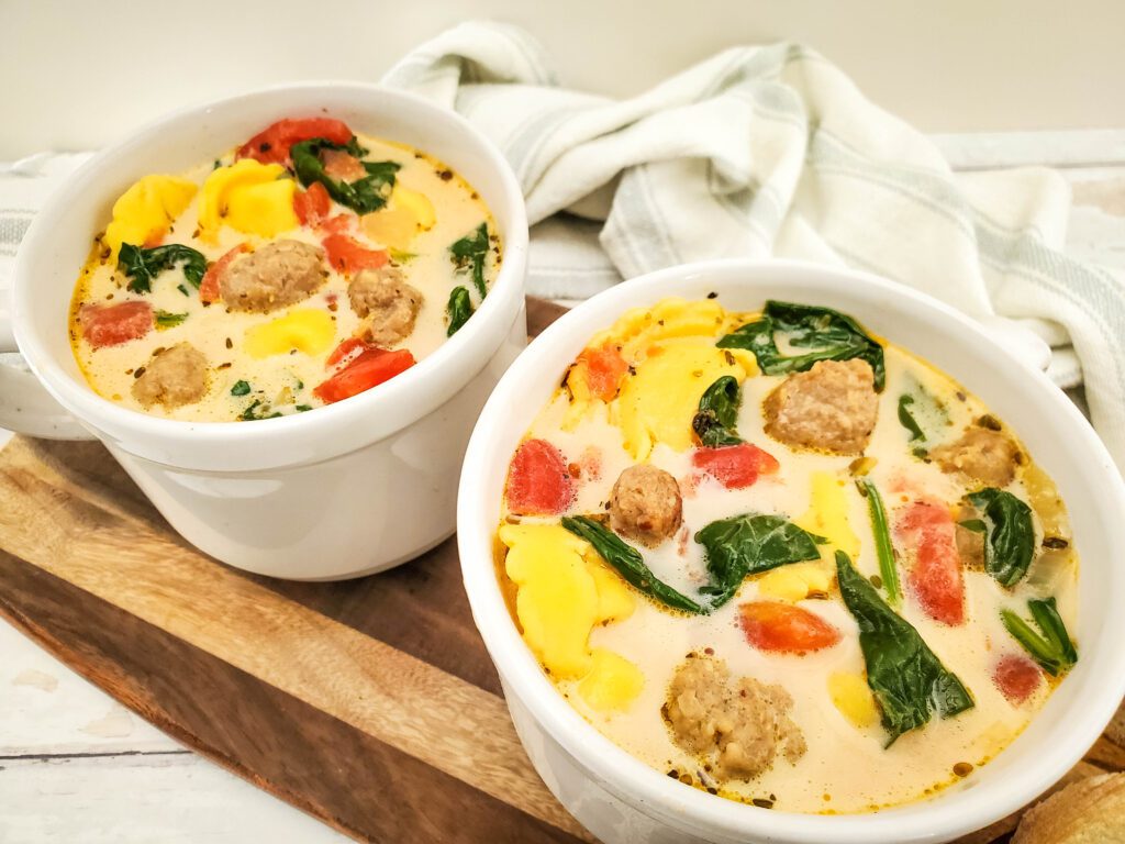 The perfect comfort food — this hearty soup combines sausage, tortellini, and spinach in a creamy tomato broth.