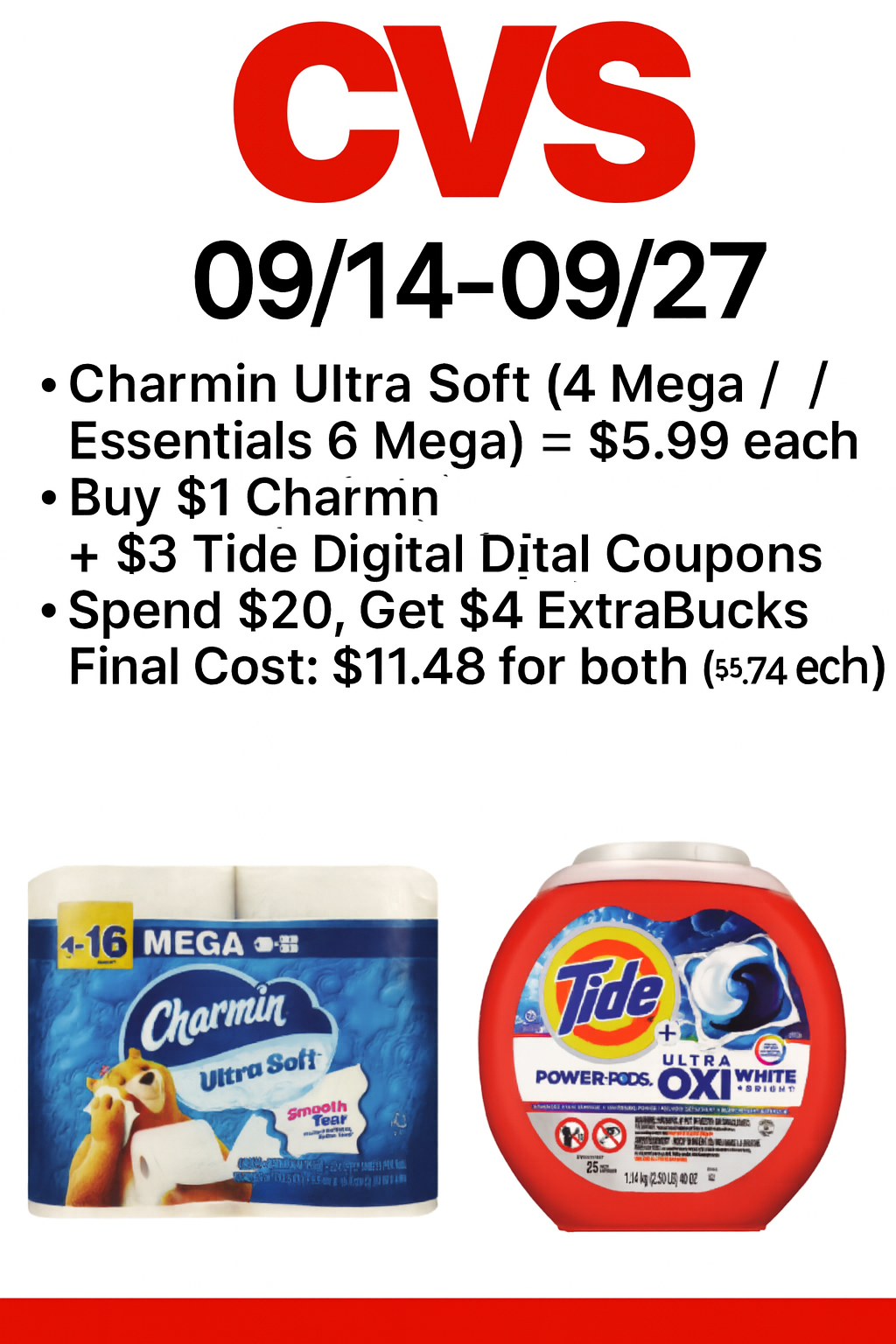 • Use $1 Charmin + $3 Tide Digital Coupons