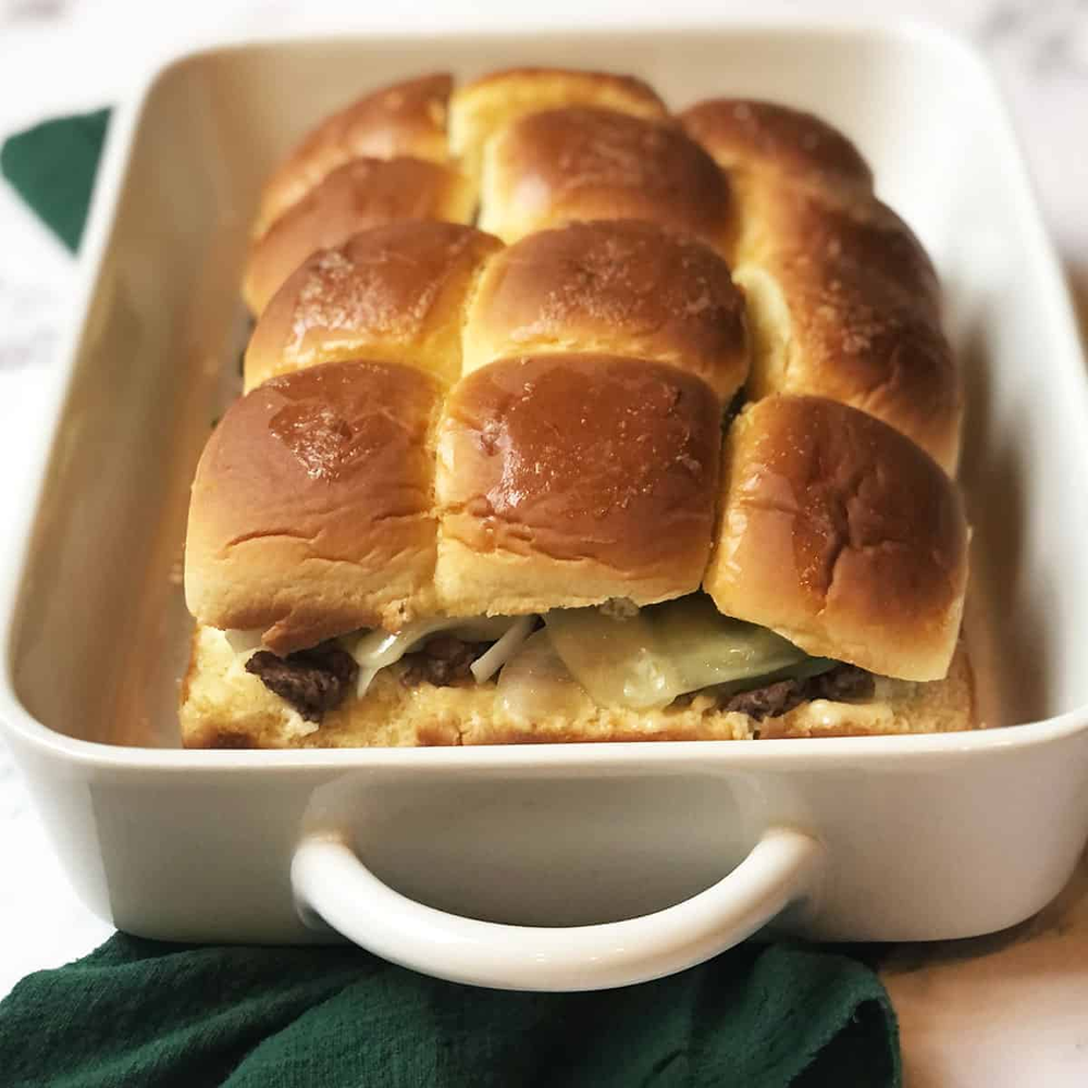 PHILLY CHEESESTEAK SLIDERS WITH GROUND BEEF These philly cheesesteak sliders with ground beef are perfect for a big game day, parties, potlucks, or a weeknight dinner. They are absolutely delicious and loaded with flavor!