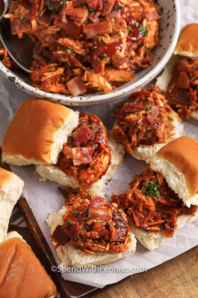 A simple combo of bacon, chicken and bbq sauce make the most delicious pulled chicken! This recipe is great when you are looking for a change from pulled pork or beef. It’s a meal that everyone will rave about. https://www.spendwithpennies.com/slow-cooker-bacon-barbecue-chicken-sliders/?fbclid=IwAR3_k1ryxmojibDZ2EfLCL9G73MSDKQTGI95T2pwpu5n0XWkyYyVvypL5u0