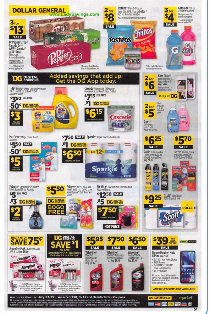 Here is your early Dollar General Ad Scan for the week of 07/23-07/29