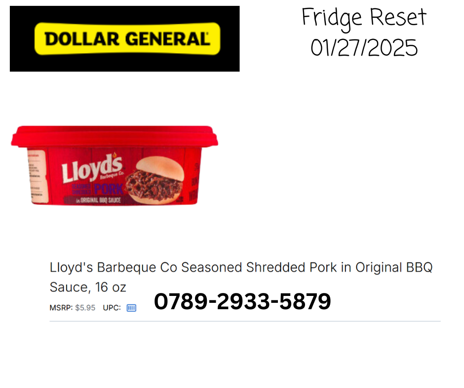 - Lloyd’s Pork BBQ 16oz – UPC: 0789-2933-5879