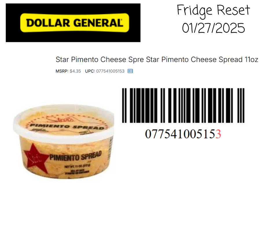 - Star Pimento Cheese Spread 11oz – UPC: 0775-4100-5153