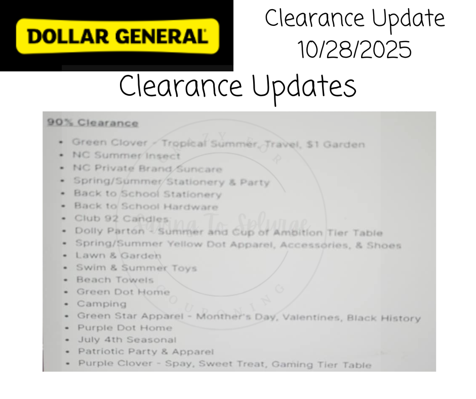 Here is your updates to the  Dollar General Clearance Cycle for Tuesday,  October 28, 2025 (10/28/2025)
