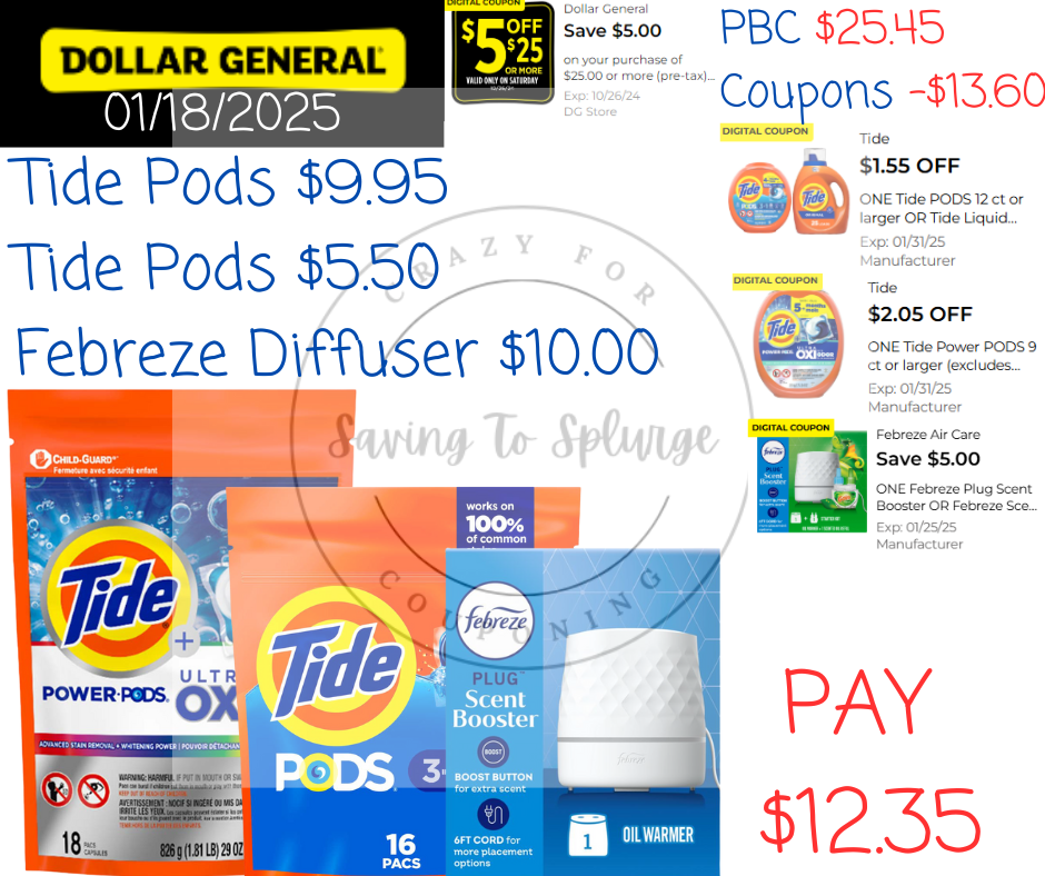 - The $5/$25 coupon stacks with Gain or Tide store coupons, such as $3 off Gain Detergent.