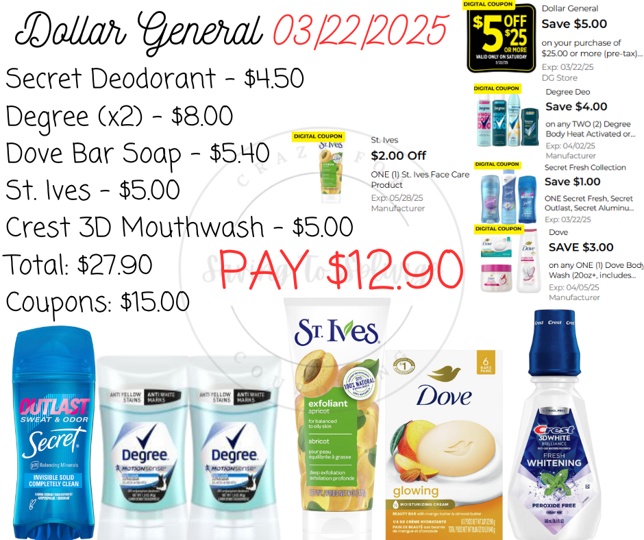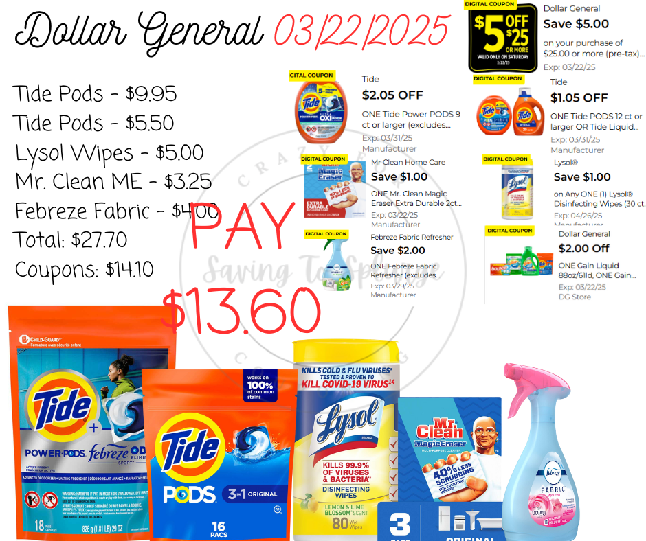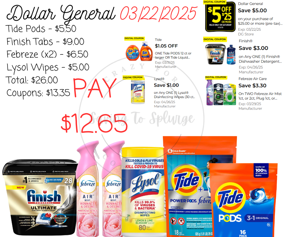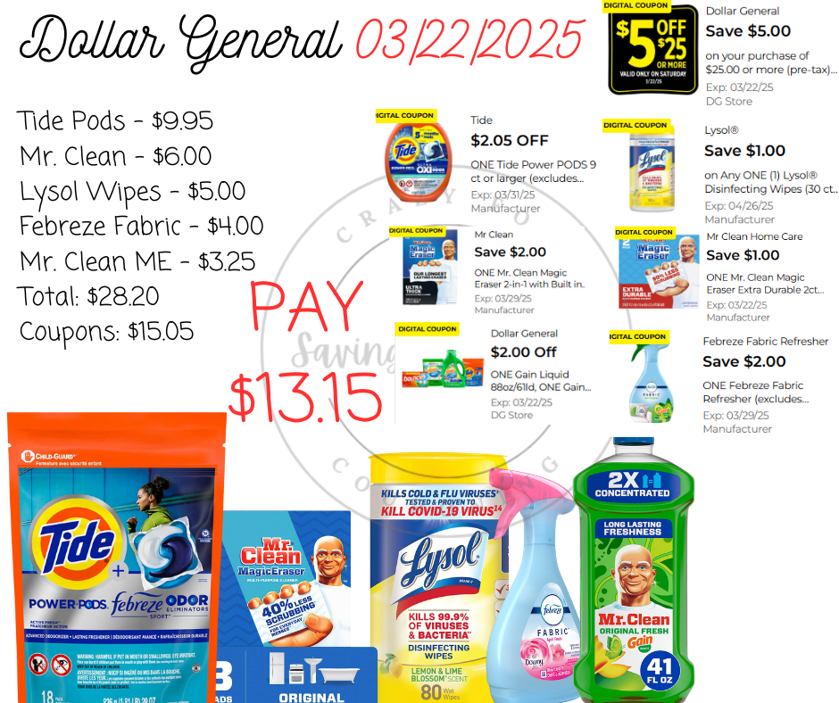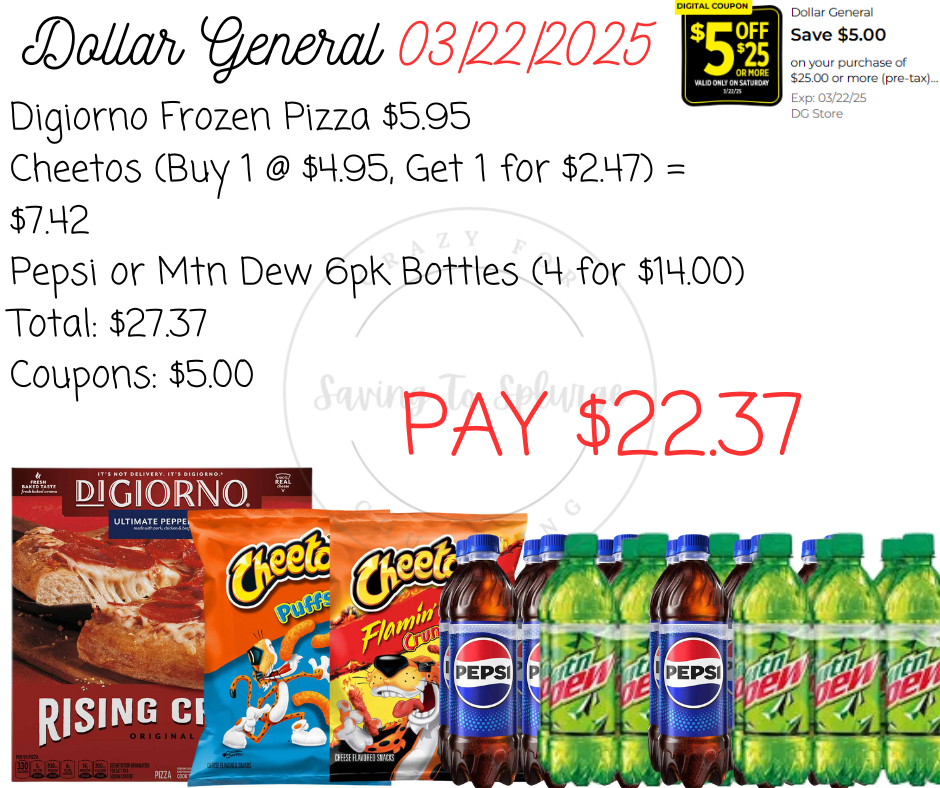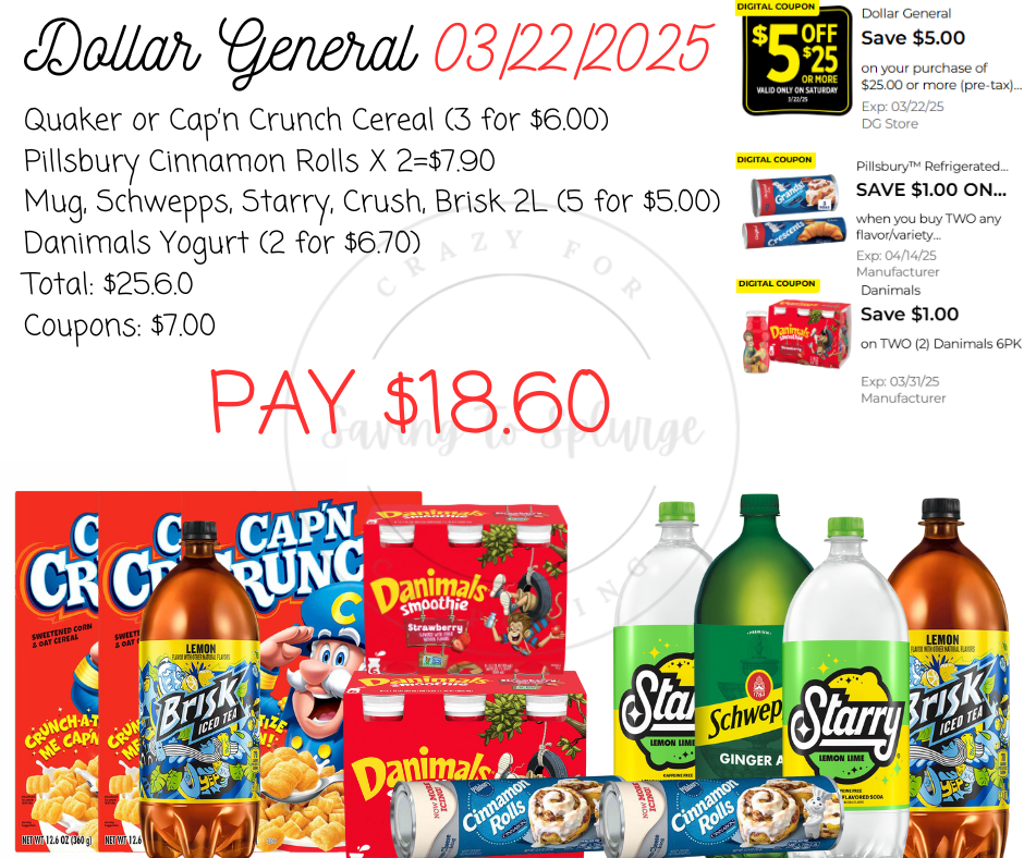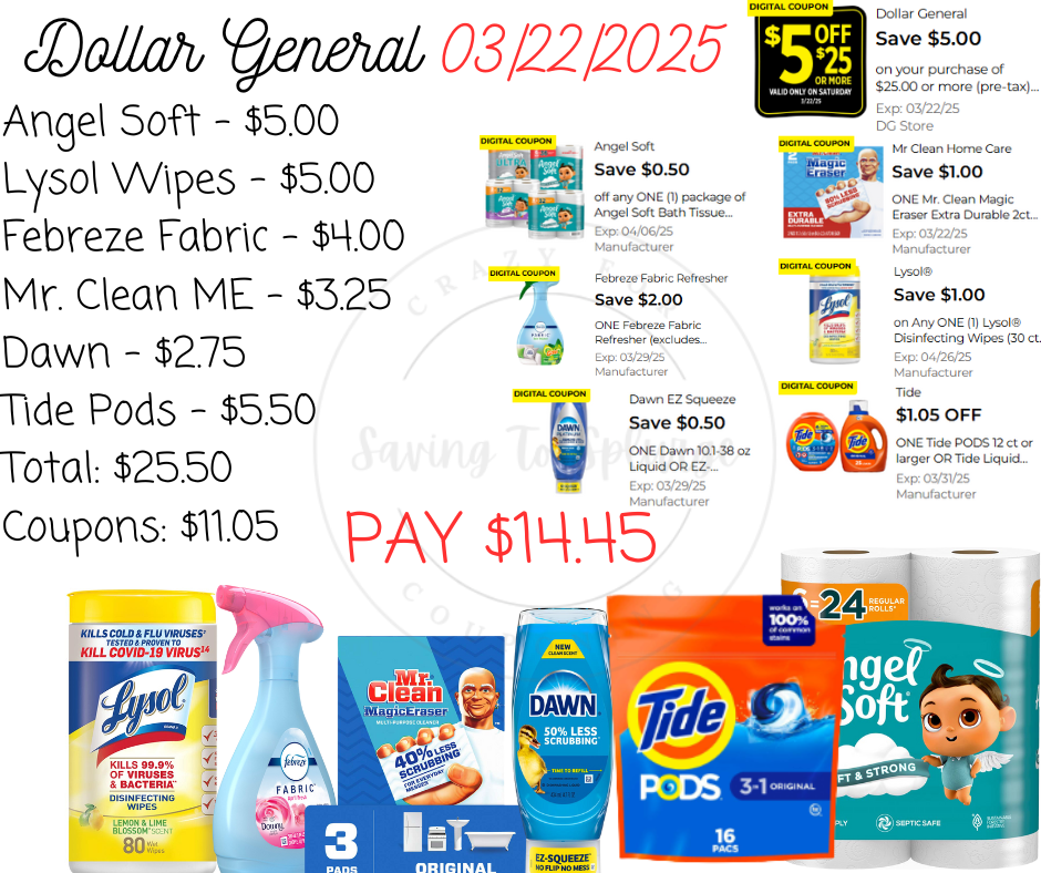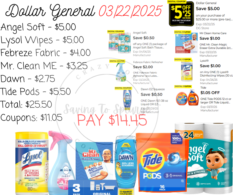 Here are your Dollar General $5/$25 Scenarios for 03/22/2025