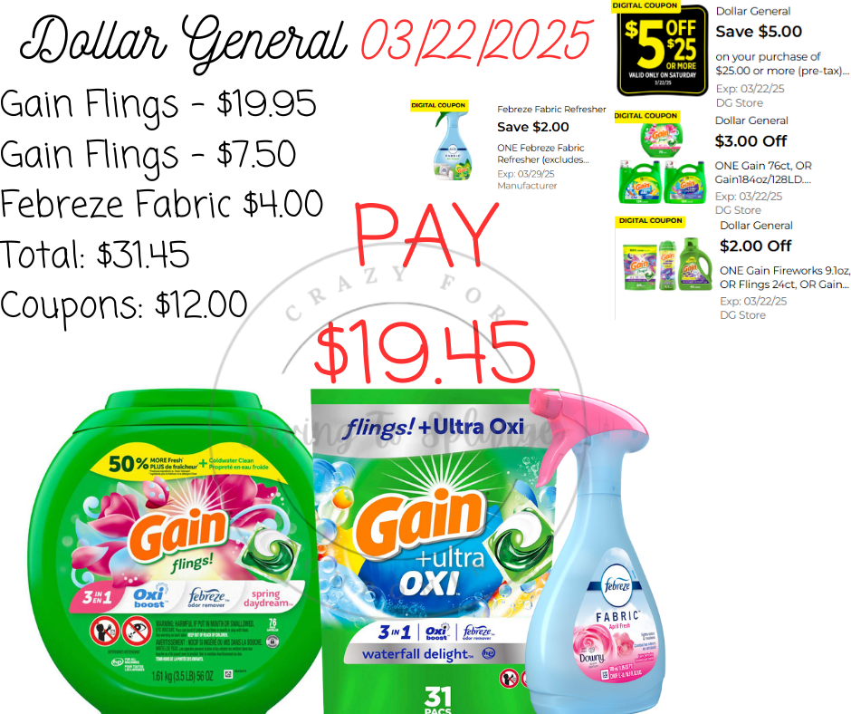 ✅ What Will and Won’t Stack? ✔️ $5/$25 WILL STACK at both old and new system stores. No paper coupon is needed. ✔️ $5/$25 stacks with Tide & Gain store coupons (as long as you meet the new system threshold requirements). ❌ $5/$30 Gain WILL NOT STACK with other Gain store coupons like $1.50 off Gain Detergent (since they are both Dollar General store coupons). ✔️ $5/$30 Gain WILL STACK with manufacturer coupons on Gain-scented products (Swiffer, Febreze, Mr. Clean, etc.) at both old and new system stores.