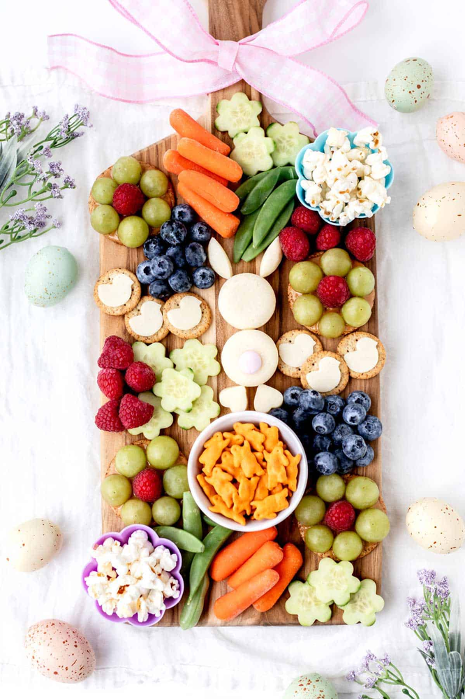This Easter bunny snack board is the perfect appetizer – made with just a few simple ingredients and some cookie cutters
