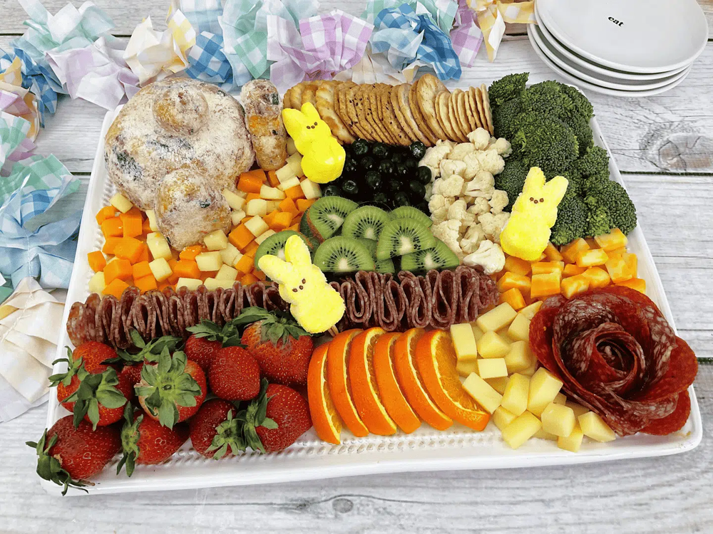 This bunny charcuterie board is the perfect appetizer for Easter. Not only is it delicious but also totally easy to make for the holidays!
