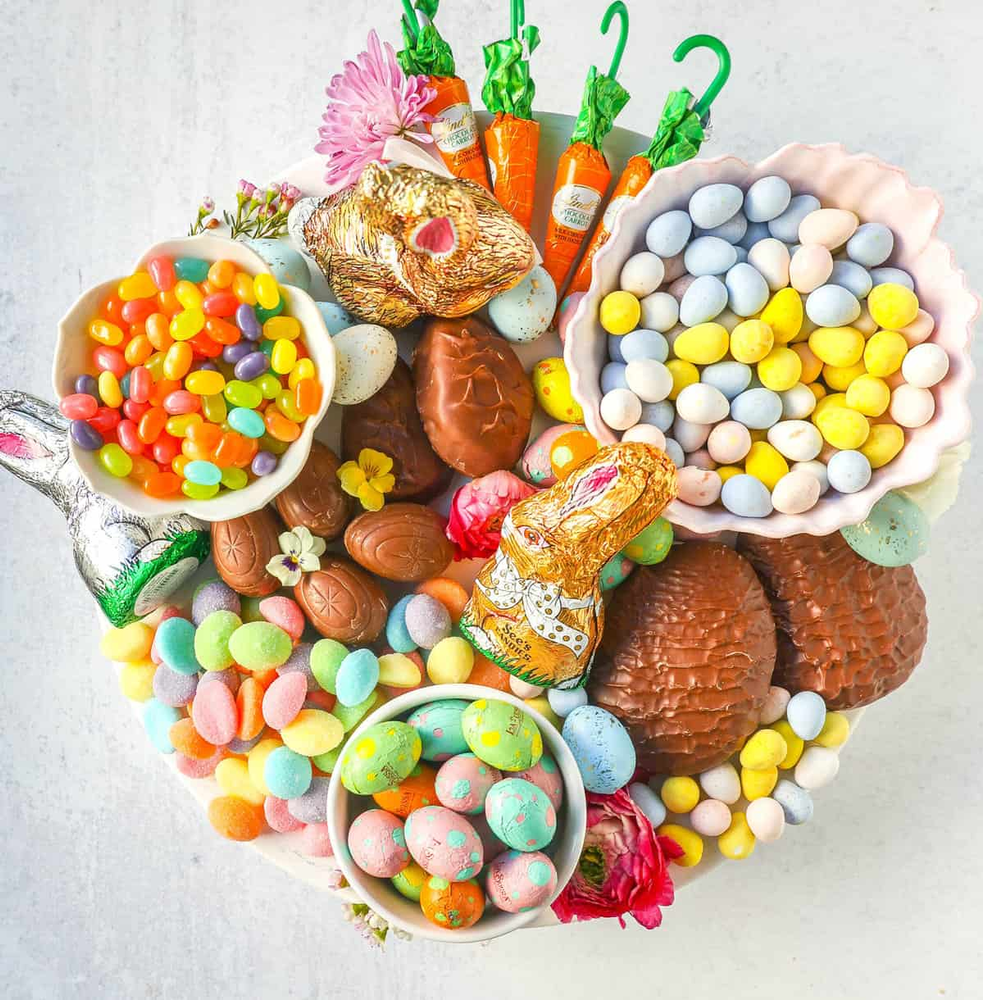 If you’re looking to put together Easter Candy Charcuterie Board, keep reading! I’ll show you how to create it as well as what sweet treats and homemade desserts to including for a stunning effect!