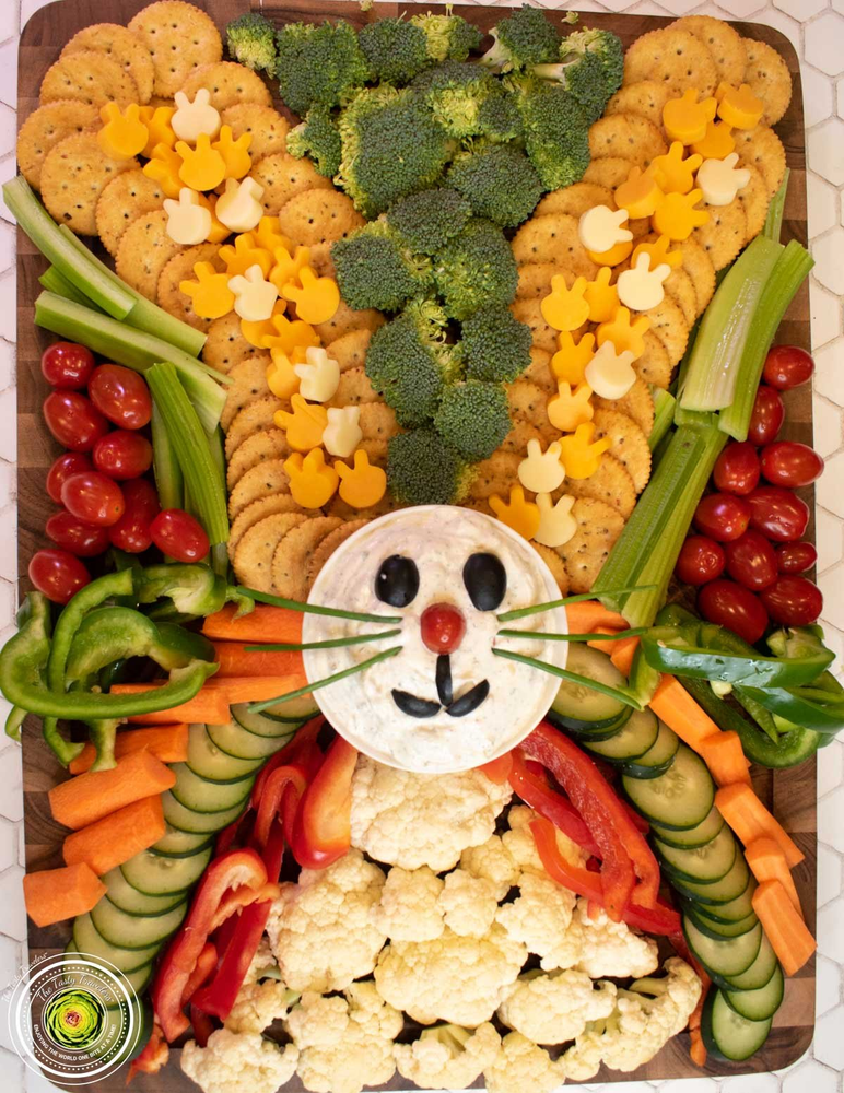 One of the really nice things about making an Easter veggie tray like this is that just about anyone can find something that they like to eat on the tray! It’s the perfect Easter appetizer…and the kids love it too! Yes, I know, it’s vegetables, but look at the bunny ears and cute little bunny face! What kid would not love this!?