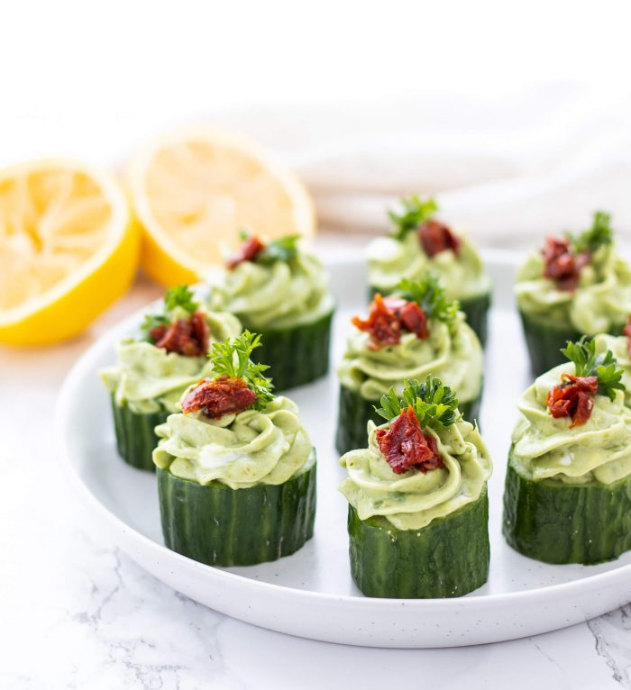 Avocado Goat Cheese Cucumber Bites by Haute and Healthy Living