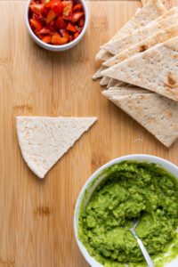 5. Assemble the Pita Trees: Spread a generous layer of the mashed avocado mixture on each toasted pita wedge.