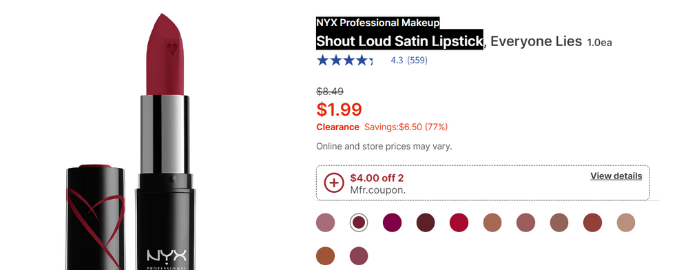 Hurry to Walgreens to grab two of these NYX lipsticks for free! On sale for $1.99, they're normally priced at $8.49. We have a $4 off two digital coupon to grab two fo them for free!