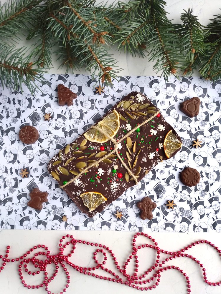This dessert can be packaged and given as a gift Present the broken pieces to a sweet table or arrange on a candy board. Taking the idea as a base you can make your own variations with cinnamon, coarse salt, chili or raisins. Merry Christmas!