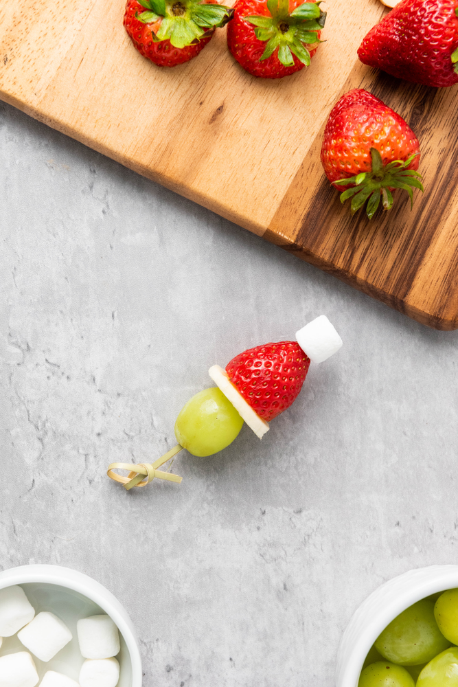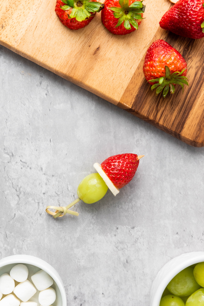 • Finish off the kabob by adding a mini marshmallow to the tip of the strawberry for the pom-pom on the Santa hat.
