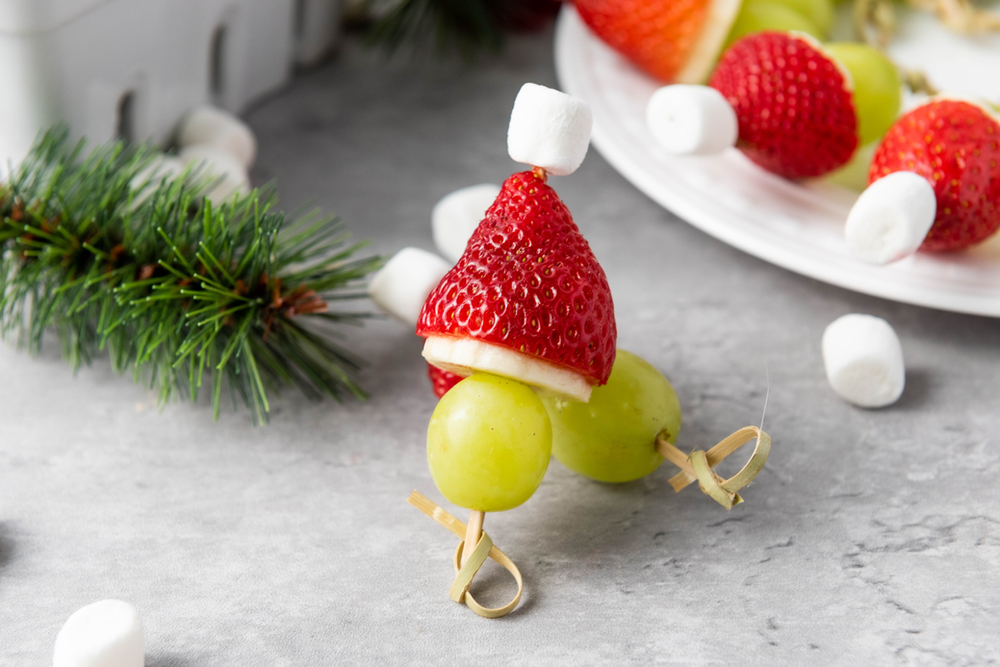• Arrange the Grinch fruit kabobs on a festive platter.