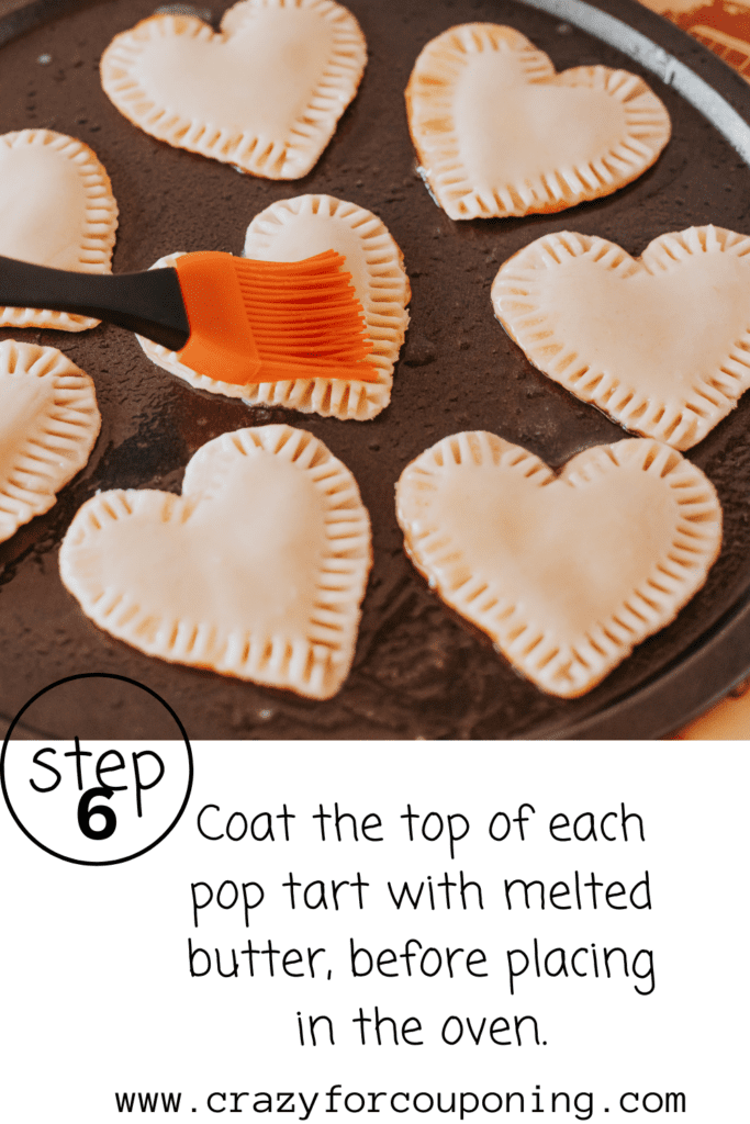 6. Coat the top of each pop tart with melted butter, before placing in the oven.