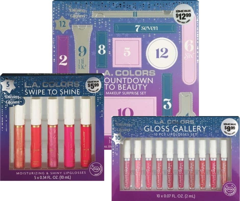 - L.A. Colors, X+Y=Beauty, or W7 Cosmetic Holiday Gift Sets