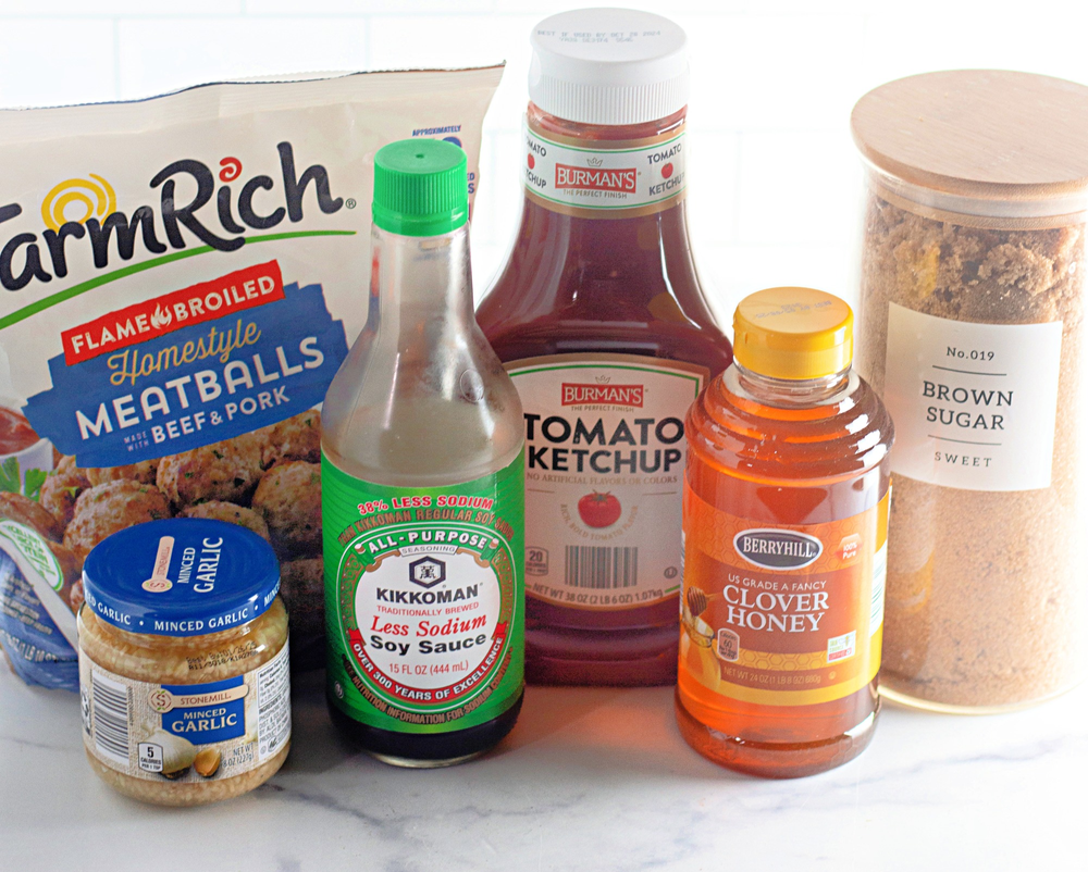 In a large mixing bowl, whisk together the ketchup, brown sugar, honey, soy sauce, and minced garlic. Pour the mixture over the meatballs and stir to coat the meatballs.