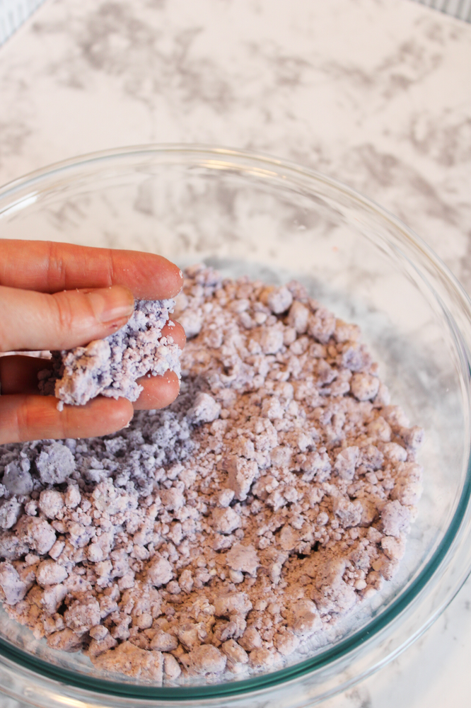 4. If moon sand is too dry add a small amount of oil and continue to mix. If the moon sand