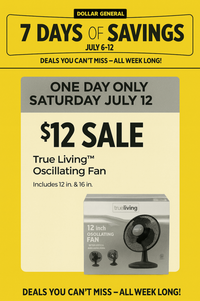To beat the heat at home, don’t miss Saturday’s deal on True Living Oscillating Fans. Both 12-inch and 16-inch models are on sale for just $12, down from the regular price of $20. That’s a cool 40% savings!