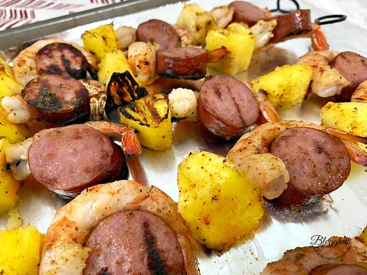 GRILLED SHRIMP AND SAUSAGE WITH PINEAPPLE SKEWERS