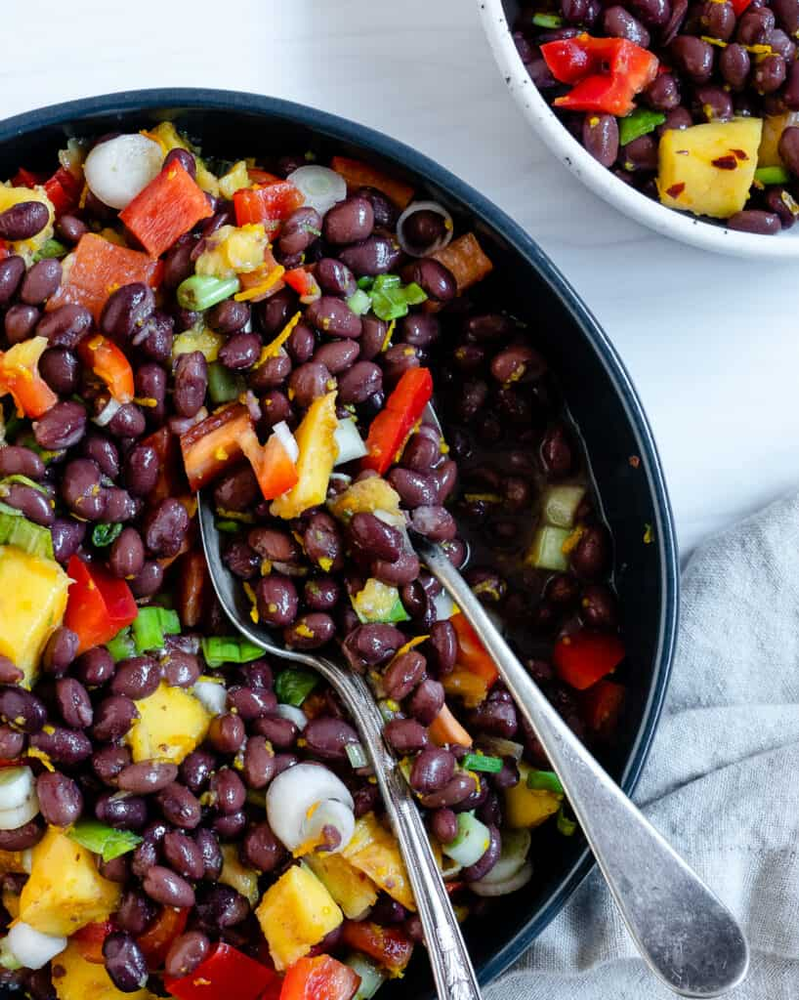 This mango bean salad is perfect for a potluck! It has so much plant based protein that your guests are going to fall in love with this healthy side!