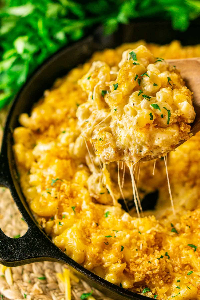 Mac n cheese has never been so flavorful as it is with this smoked recipe! Made with three cheeses, this dish is pure and simple comfort food at it’s finest.
