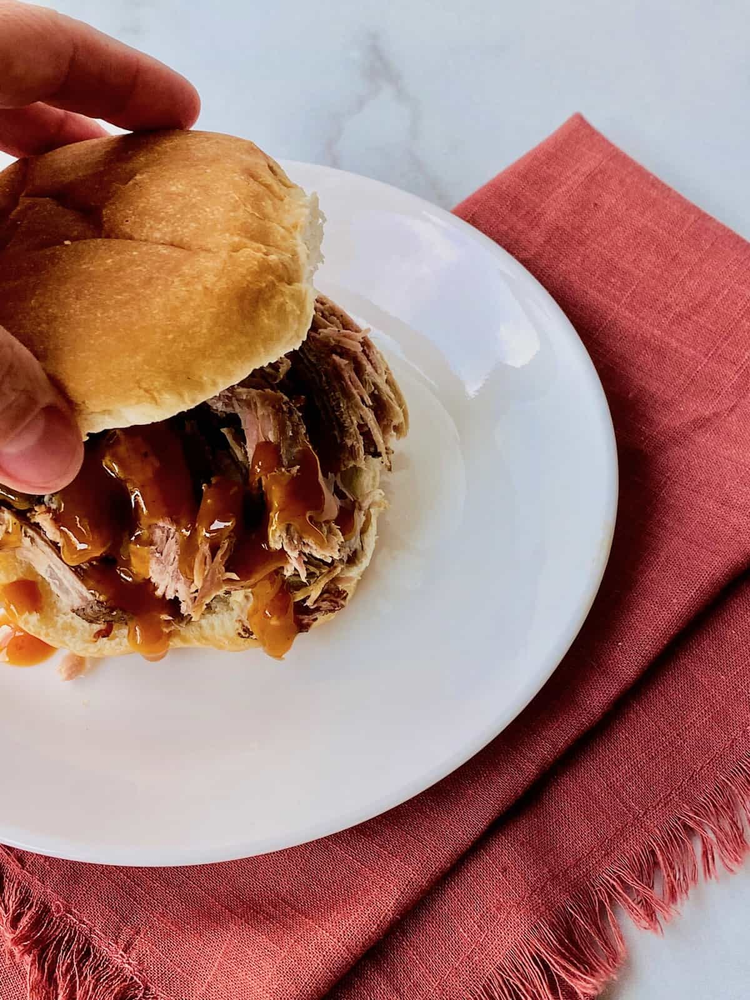 Smoked a pork butt then shred it and slather on some bbq sauce for the tastiest sandwich on Memorial day! This can feed a crowd and have them licking their fingers when they are finished!