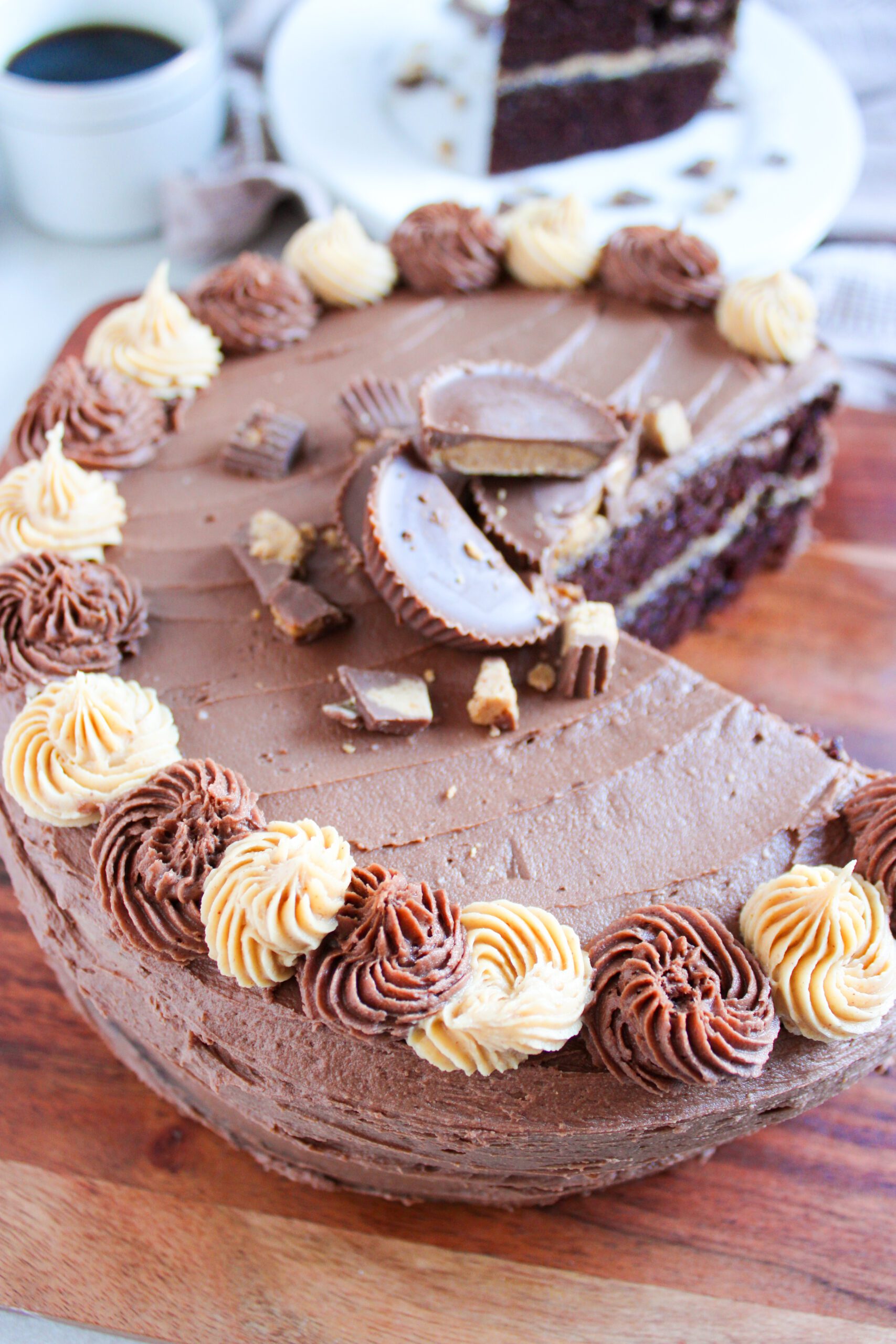 - Layer and frost cakes, decorate with piping, and garnish with Reese’s.