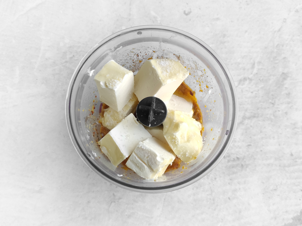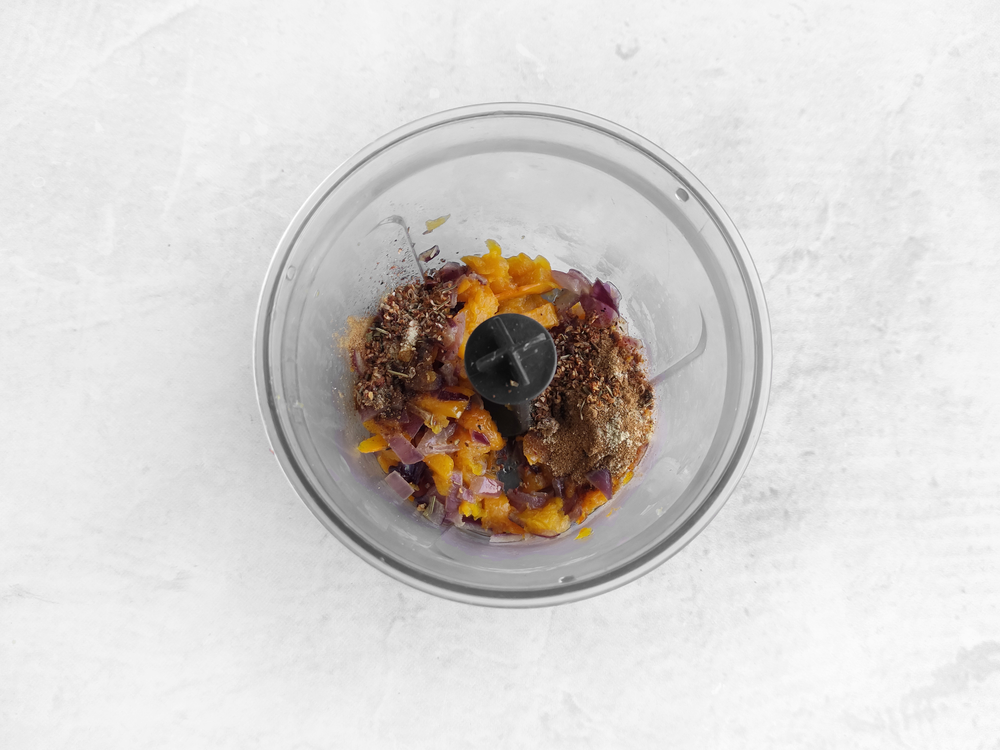 4. Cool the mixture and transfer it to a blender bowl. add the spices and puree the mixture.