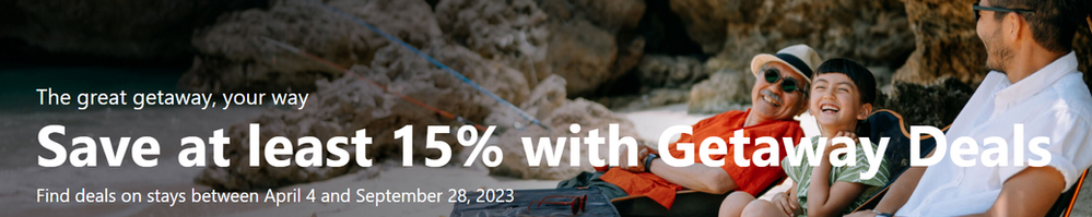 Save at least 15% with Getaway Deals; Find deals on stays between April 4 and September 28, 2023