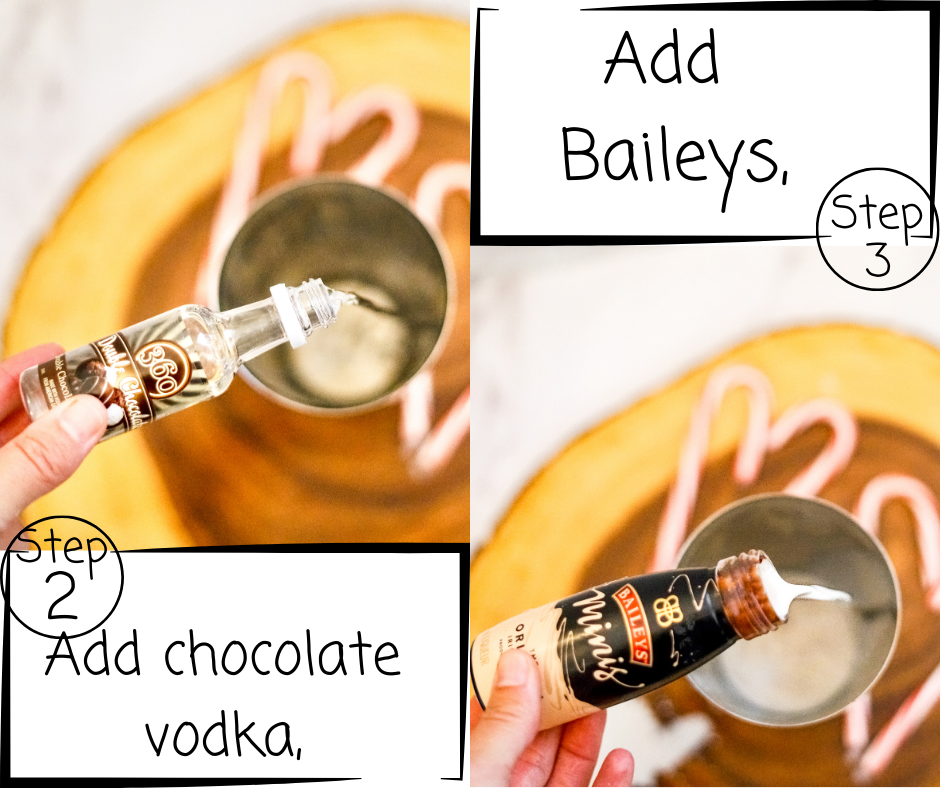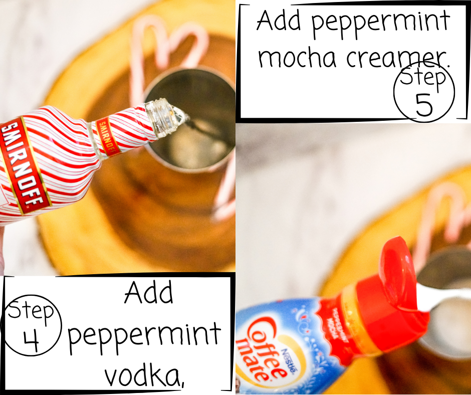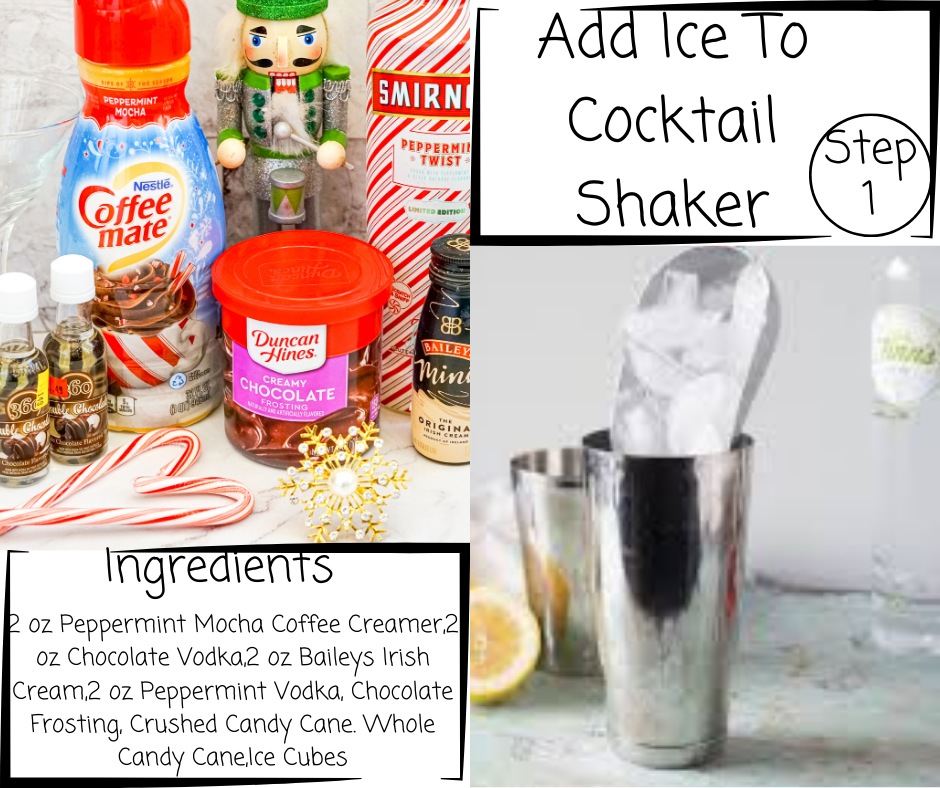 1. Shake it Up: Fill a cocktail shaker with ice cubes and combine chocolate vodka, Baileys, peppermint vodka, and peppermint mocha creamer.