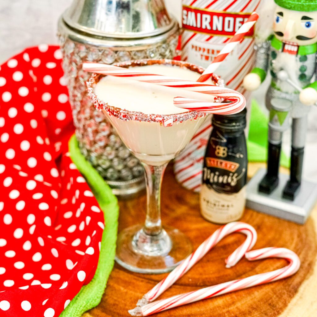 Pair this martini with holiday desserts like cookies, truffles, or chocolate bark. It also complements savory hors d’oeuvres like cheese platters or charcuterie boards, balancing sweet and salty flavors.
