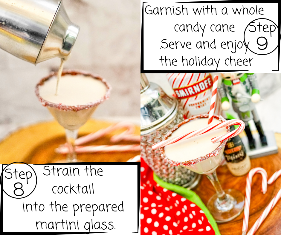 4. Garnish: Add a whole candy cane for a decorative and functional stirrer. Cheers